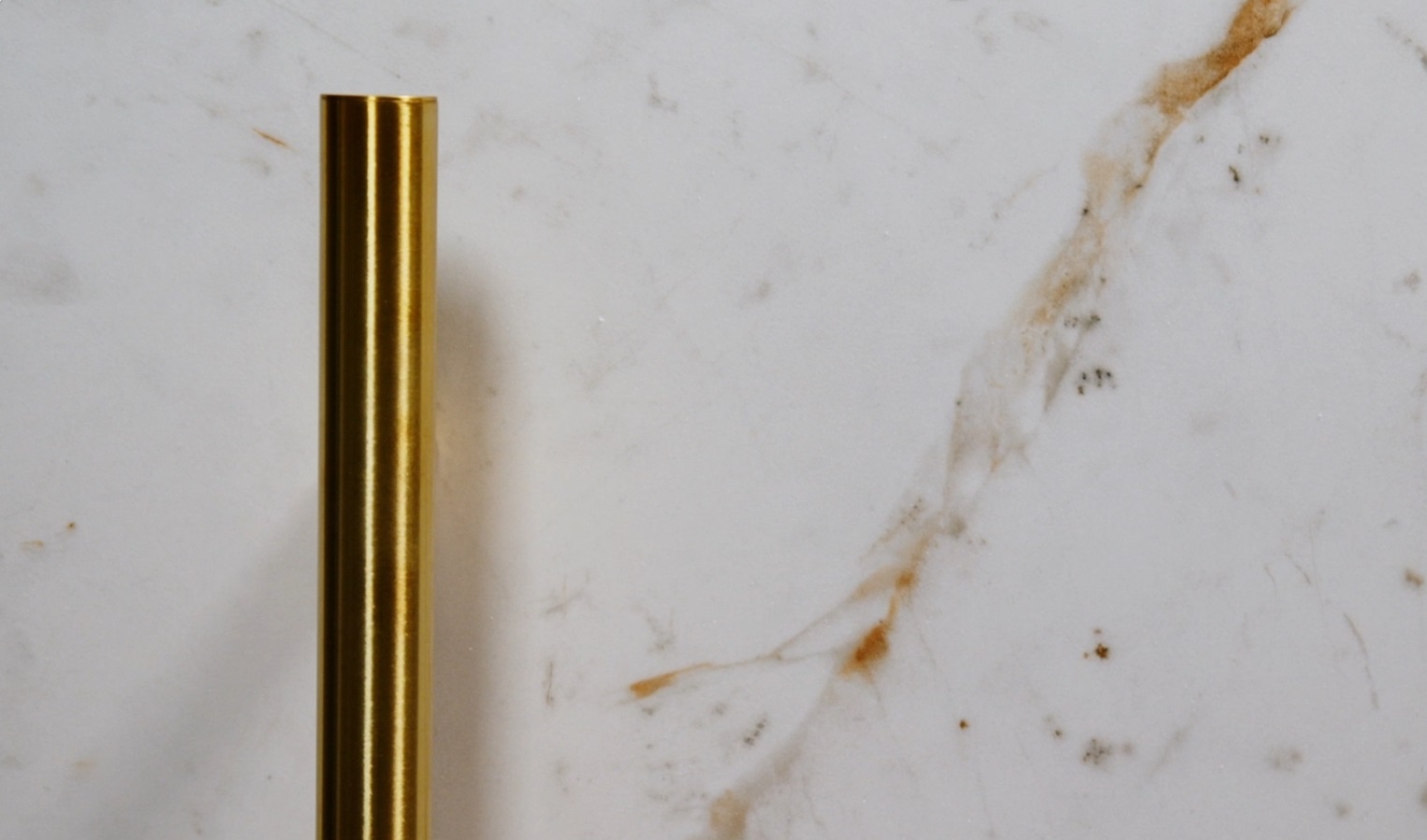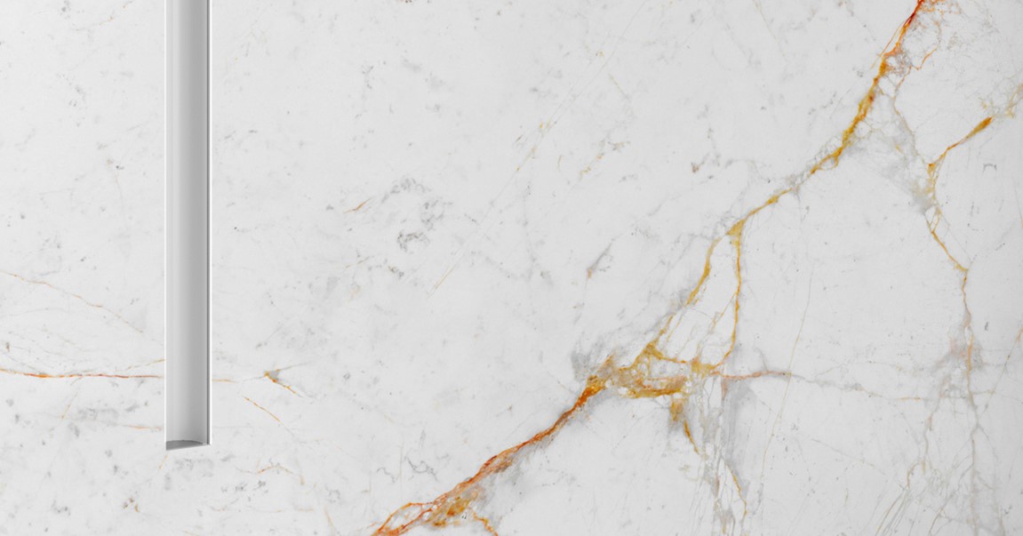 Pierwsza wersja PIVOT 10 to wzór z dekoracyjnym spiekiem Abu Dhabi White wzbogacony o pionowy złoty uchwyt PS 10.