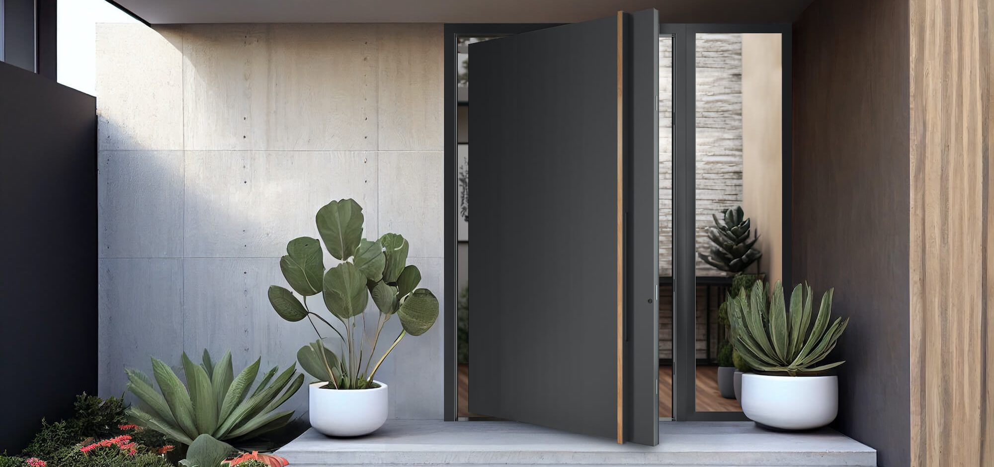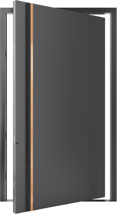 Model PIVOT 13 to przykład minimalistycznego designu, który został uzyskany dzięki dużej, płaskiej powierzchni wypełnienia drzwiowego w kolorze głębokiej czerni. Elegancji dodaje mu wyraźny akcent w postaci pochwytu, który harmonijnie współgra z kolorystyką wypełnienia.