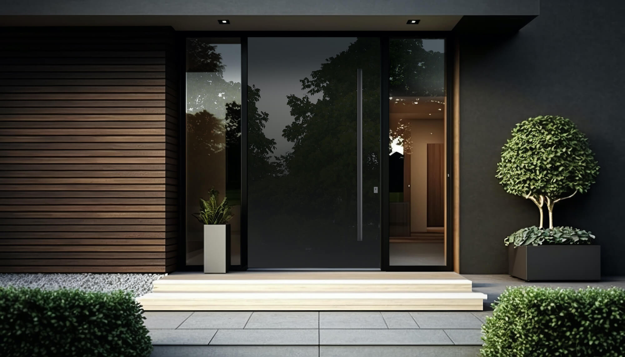 Możliwości, jakie daje szkło, są praktycznie nieograniczone, dlatego w modelu PIVOT 09 postawiliśmy na formę wykonaną z ogromnej tafli czarnego szkła. To wyjątkowe rozwiązanie sprawdzi się zarówno w monumentalnych projektach, jak i w małych domach jednorodzinnych. Panel z czarnego szkła zachwyca swoją barwą i doskonale komponuje się z otoczeniem. Jego niezwykły wygląd idealnie współgra z luksusowym wystrojem oraz detalami we wnętrzu domu. Dodatkowym atutem jest praktyczność − szkło jest łatwe w utrzymaniu w czystości i odporne na wpływ czynników atmosferycznych.