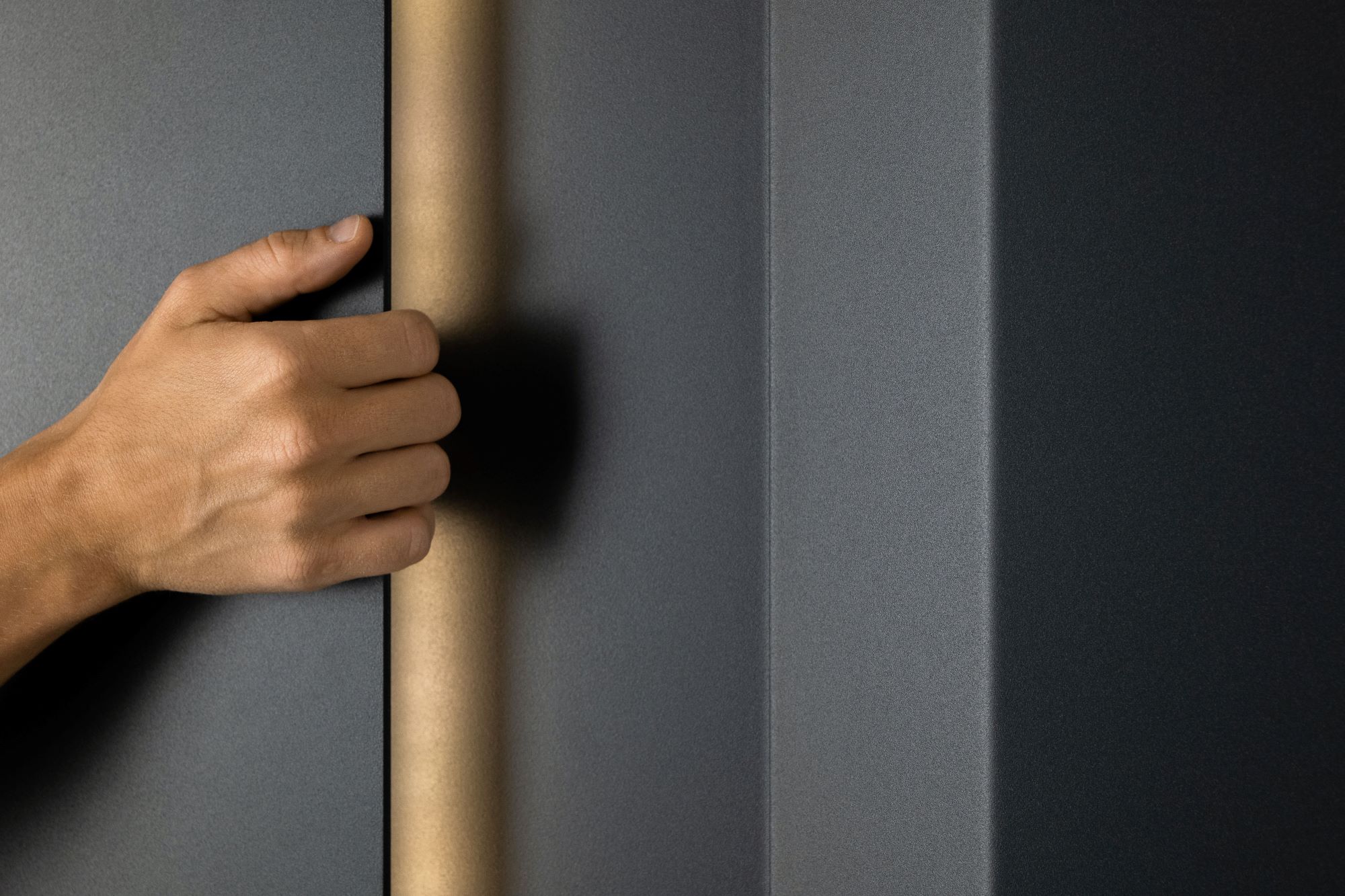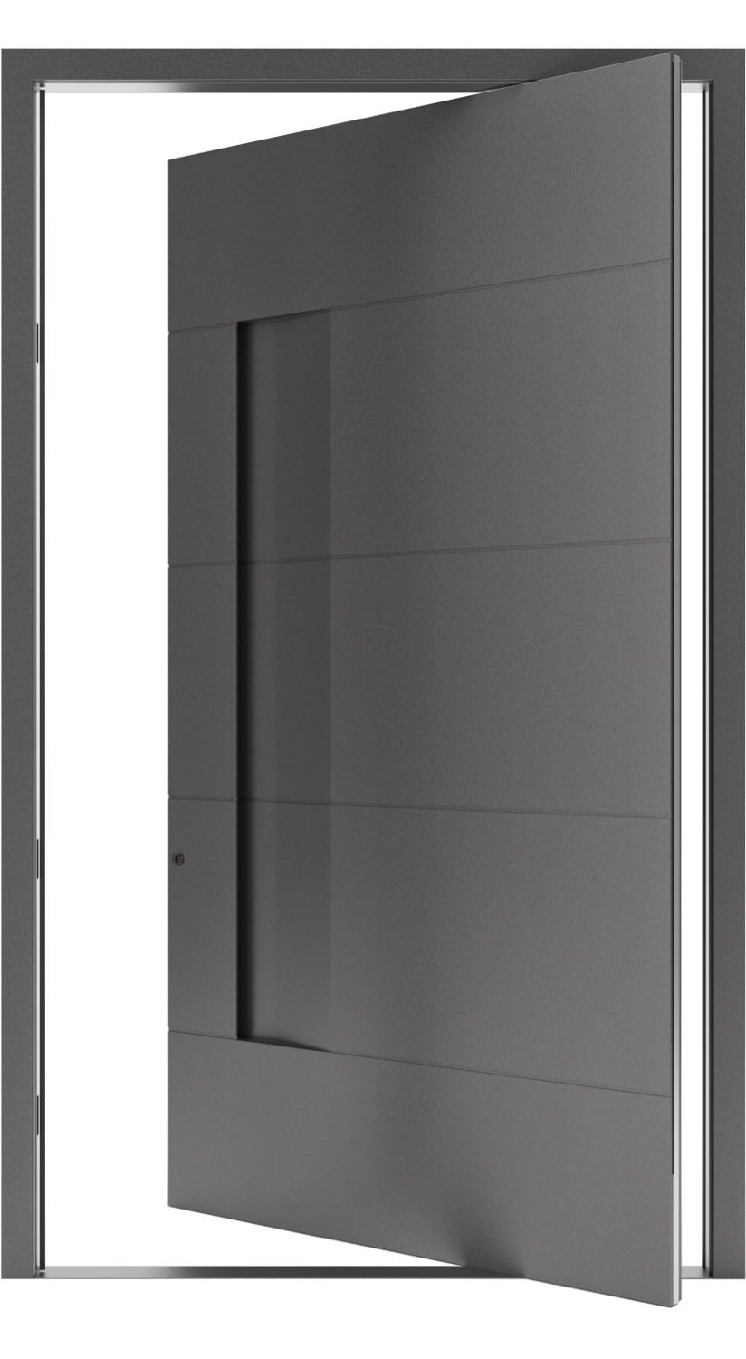 Model PIVOT 02, z innowacyjnym systemem otwierania, z pewnością sprosta oczekiwaniom najbardziej wymagających klientów. To aluminiowe wypełnienie ozdobione jest poziomymi, regularnymi frezowaniami, a przełamana płaszczyzna panelu przechodzi łagodnie we wnękę stanowiącą zintegrowany uchwyt drzwiowy.