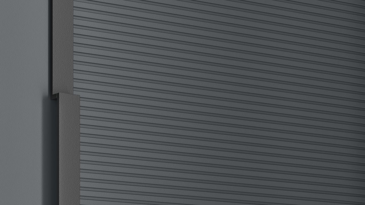 Frezowania na powierzchni wypełnienia drzwiowego są możliwe dzięki technologi tworzenia poziomych regularnych przetłoczeń na panelu aluminiowym.